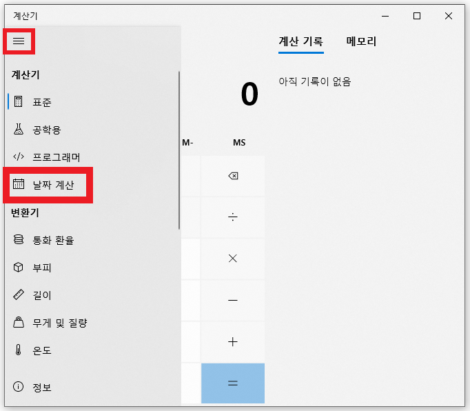 윈도우10 계산기에는 다양한 기능이 있는데 그 중에 하나로 날짜 계산이 있습니다. 사용을 안해보신분들은