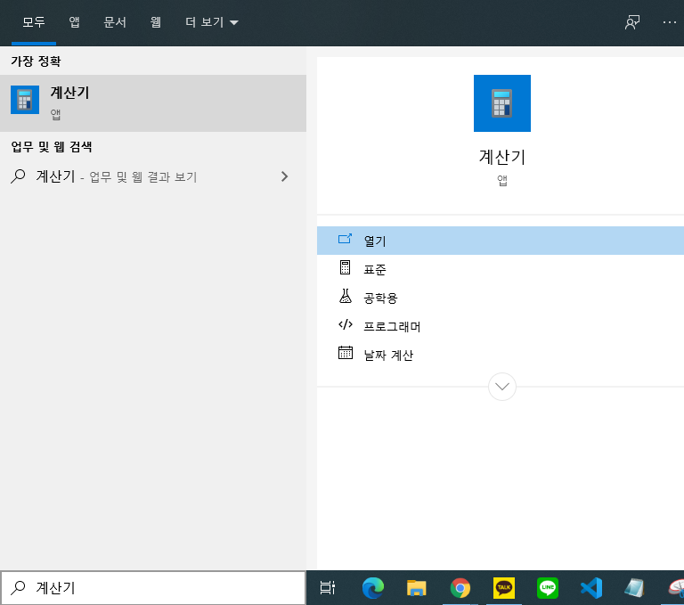 우선 윈도우 검색창에서 계산기를 입력해서 계산기를 실행합니다.