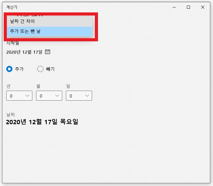 더보기 목록 안에 있는 '날짜 계산'을 선택합니다.