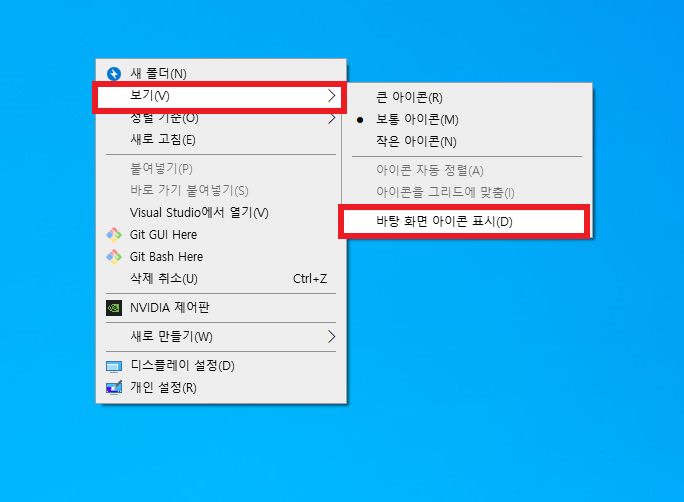 바탕화면 아이콘 표시를 클릭하면 다시 나타난 것을 확인할 수 있습니다.