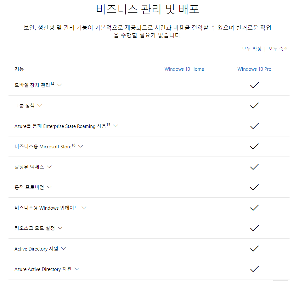 비즈니스 관리 및 배포는 홈 버전에서는 지원하지 않습니다.