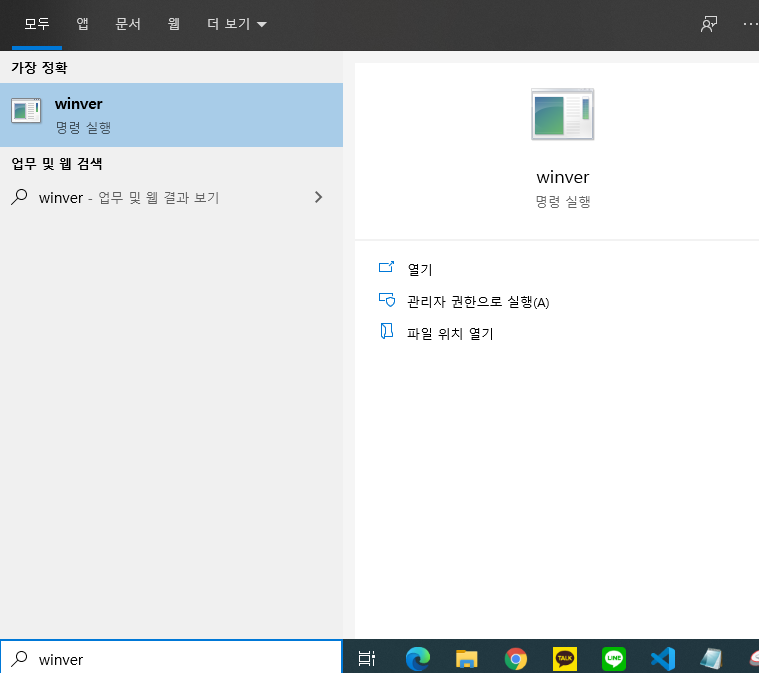 2. winver에서 바로 윈도우의 버전을 확인 가능합니다.