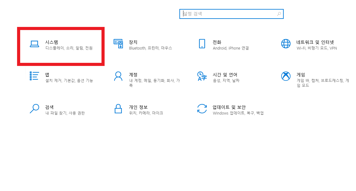2. 설정 화면에서 시스템을 클릭합니다.