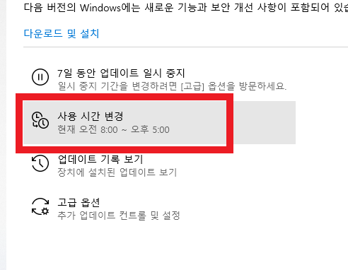 사용시간은 사용자가 컴퓨터를 사용하는 시간을 의미 합니다. 이 시간대에 업데이틀르 하지 않는다는 의미로 업데이트관해서 방해금지 정도로 이해하셔도 무방합니다.