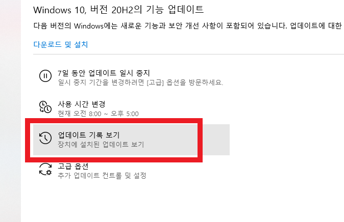 업데이트 기록은 동일 화면에서 '업데이트 기록 보기'에서 확인 가능합니다.